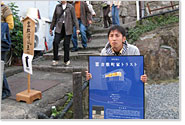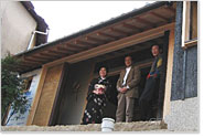 そして迎えた初日20日は生憎の寒空でしたが、着物で迎えてくれる岩本さんとお手伝いに来てくれた塾生や会員の方々のお陰でたくさんの見学者が“御坂”を上り、家に来てくれました!そして、倉敷ケーブルTVの生放送が御坂の家から行われ、その効果もあり日曜日はたくさんの人出で賑わいました。来られた方は家の中からの眺めに驚き「こんなところでのんびり泊まりたい」という声が多く、また、昔(工事前)の状態を知っている方は生まれ変わった姿にさらにビックリされていました。左官ワークショップに参加してくれた子どもさんもお母さんに「僕ここ塗った!」と披露していました。